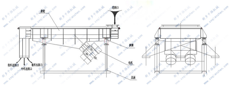 本篩機主要由進料口、篩框、觀察口、篩箱、支架、振動電機、振動體、減振彈簧、出料口等組成。